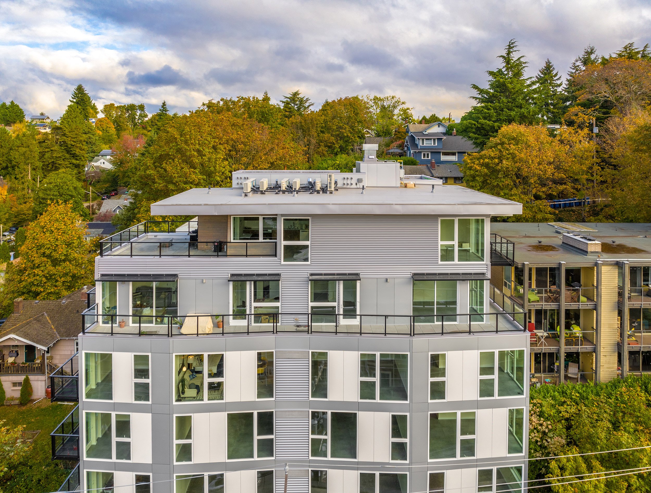 Smart density allows an unused bluff in Seattle’s Fremont neighborhood to include inspiring, light-filled flats with spectacular views of the city.