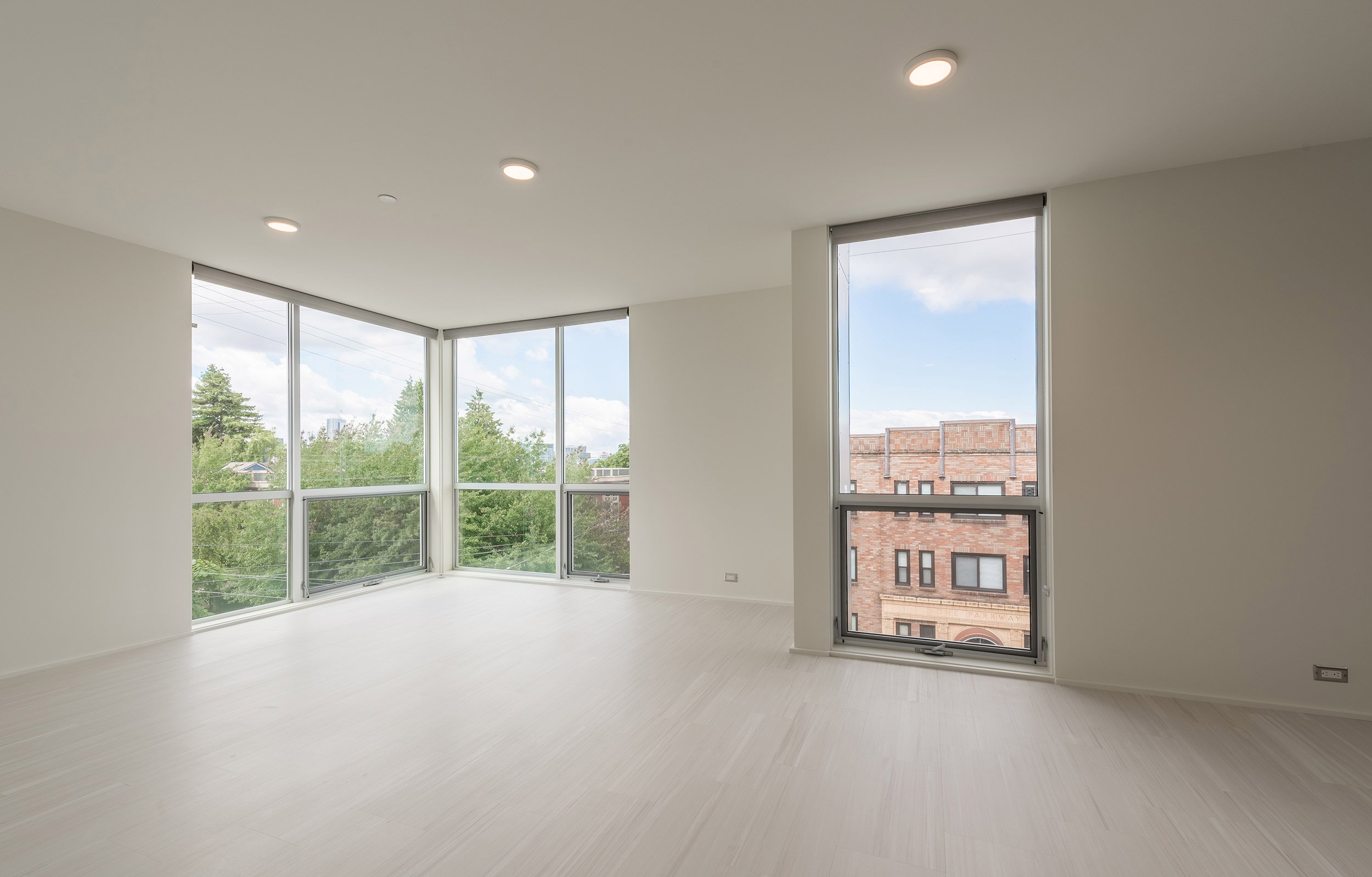The structure's massing responds directly to the numerous regulatory and utility constraints on the small site. The finished envelope consists of metal windows, and a neutral background of aluminum panels that are punctuated by functional and dynamic photo-voltaic sheets and living green walls. The building systems and interiors were carefully designed and assembled to minimize energy use, and maximize comfort and durability. The 602 Flats are certified Built Green 4-Star.