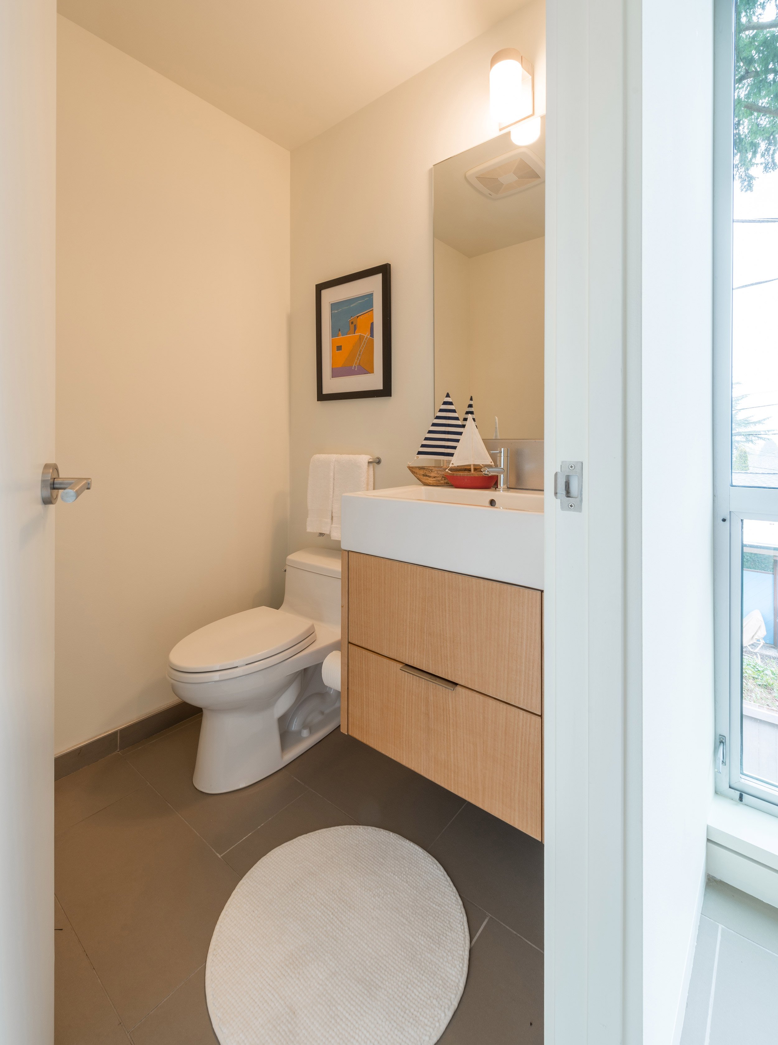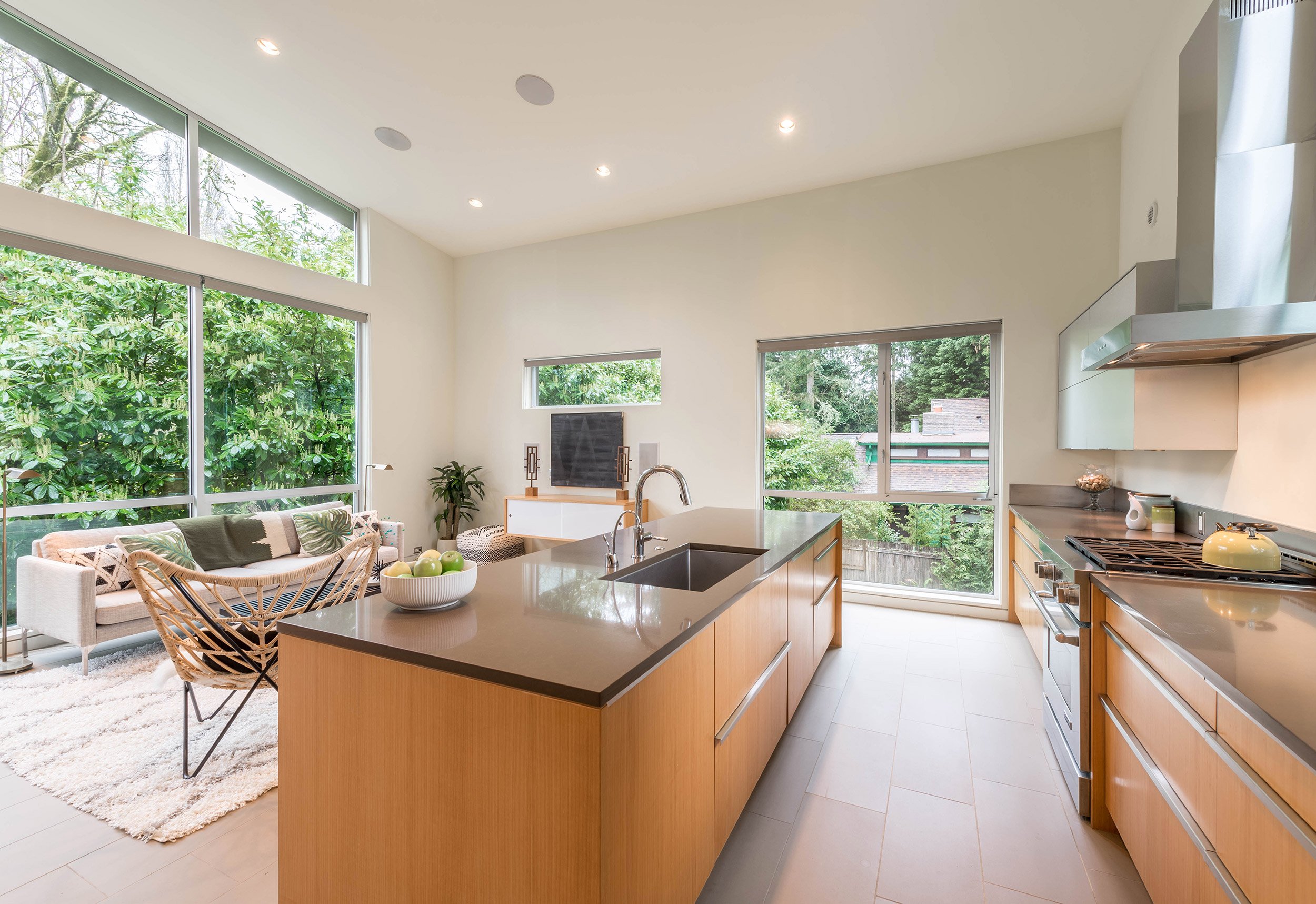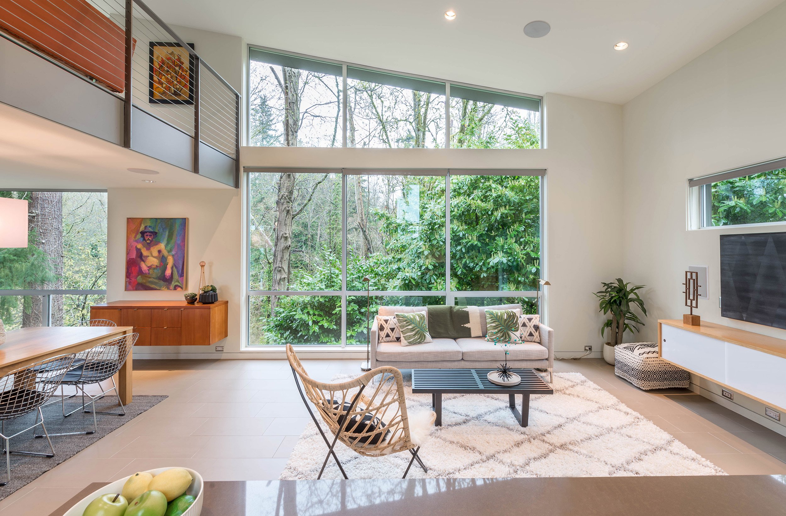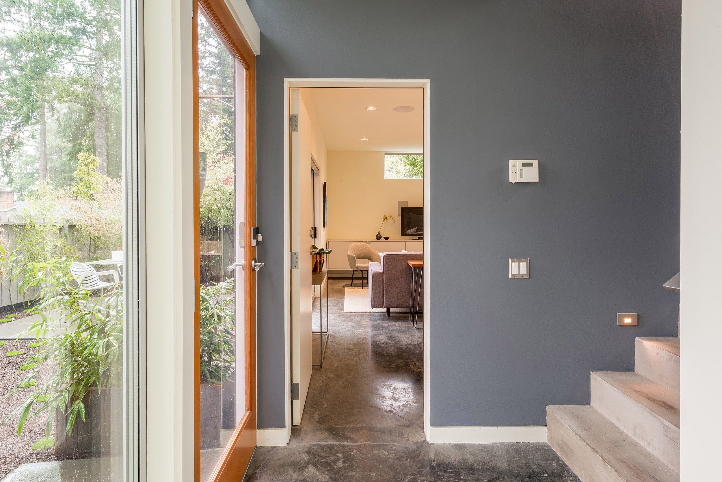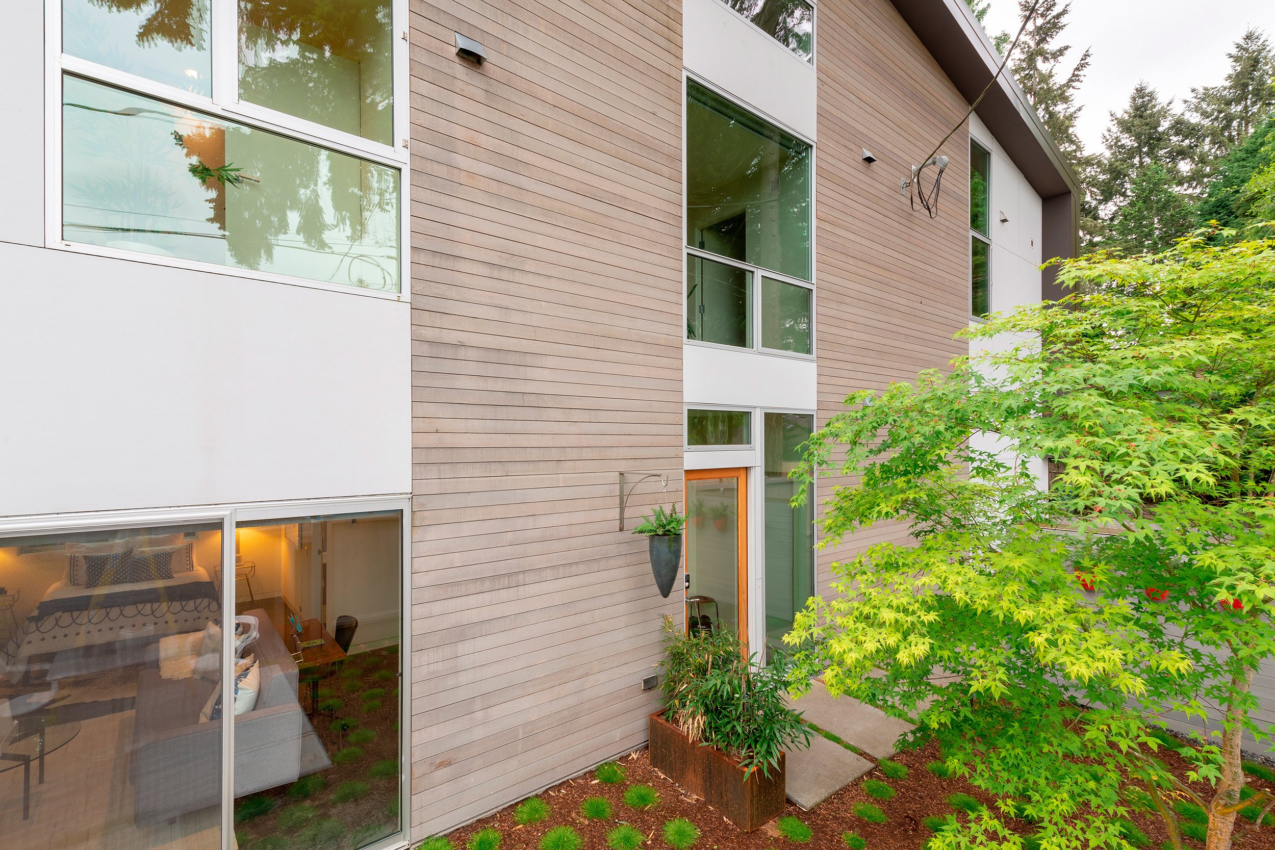 The 2,200-sf residence, with additional 700-sf flex space for shop and studio, is a design-build-development project, and the first realization of our Case Study House series. The project takes advantage of a rare, private, wooded site directly above the Thornton Creek watershed. The flexible program allows for urban family living, and a provision for a separate apartment at the ground level for an aging relative. The lofted living space provides an abundance of natural light, while providing framed views to the forest beyond. Exterior and interior finishes are carefully selected for durability, warmth, and timelessness: clean modernism that will last deep into the 21st century and beyond.