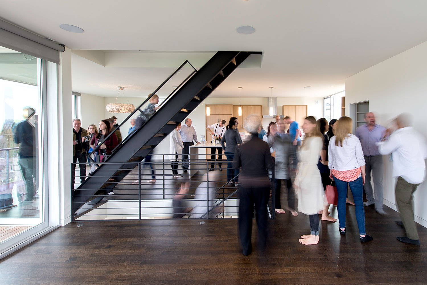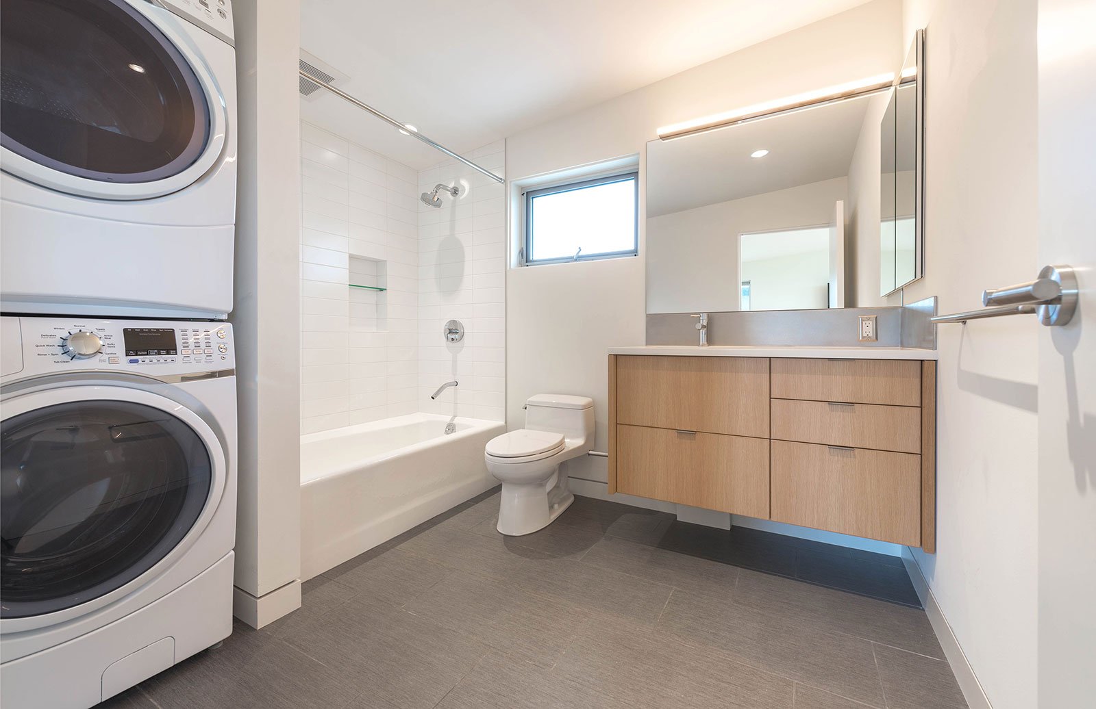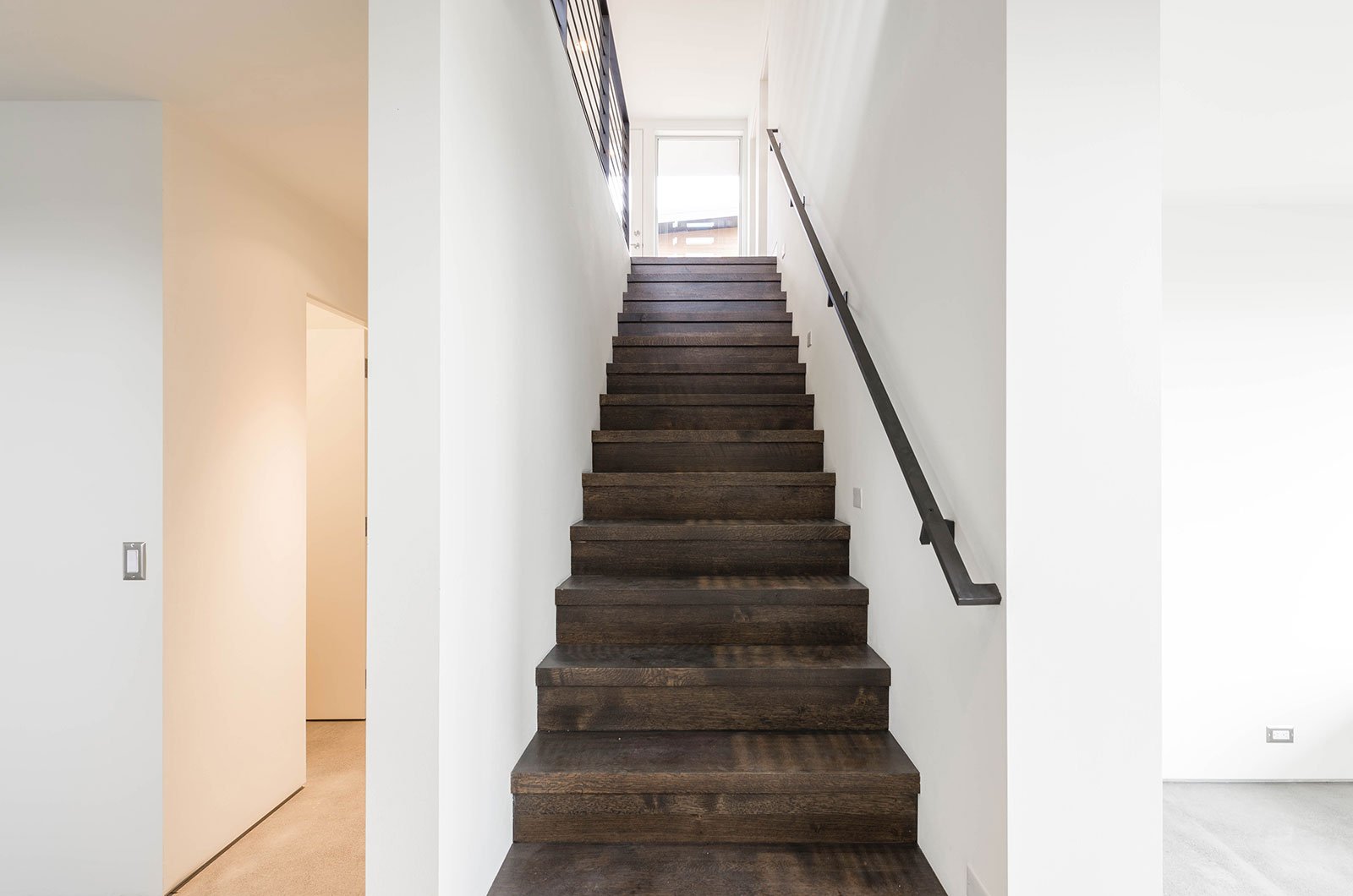 Continuing with our rich tradition of self-developing projects and experimenting with small, single-family lots with primary residences and accessory dwelling units, this three-storey residence for a small family employs a reverse floor plan where the common areas are located at the upper level to capture natural light and views of Ballard, the ship canal, and downtown Seattle. A steep slope condition, coupled with alley access, retains a tidy footprint while offering design opportunities for a day-lit basement and detached garage.