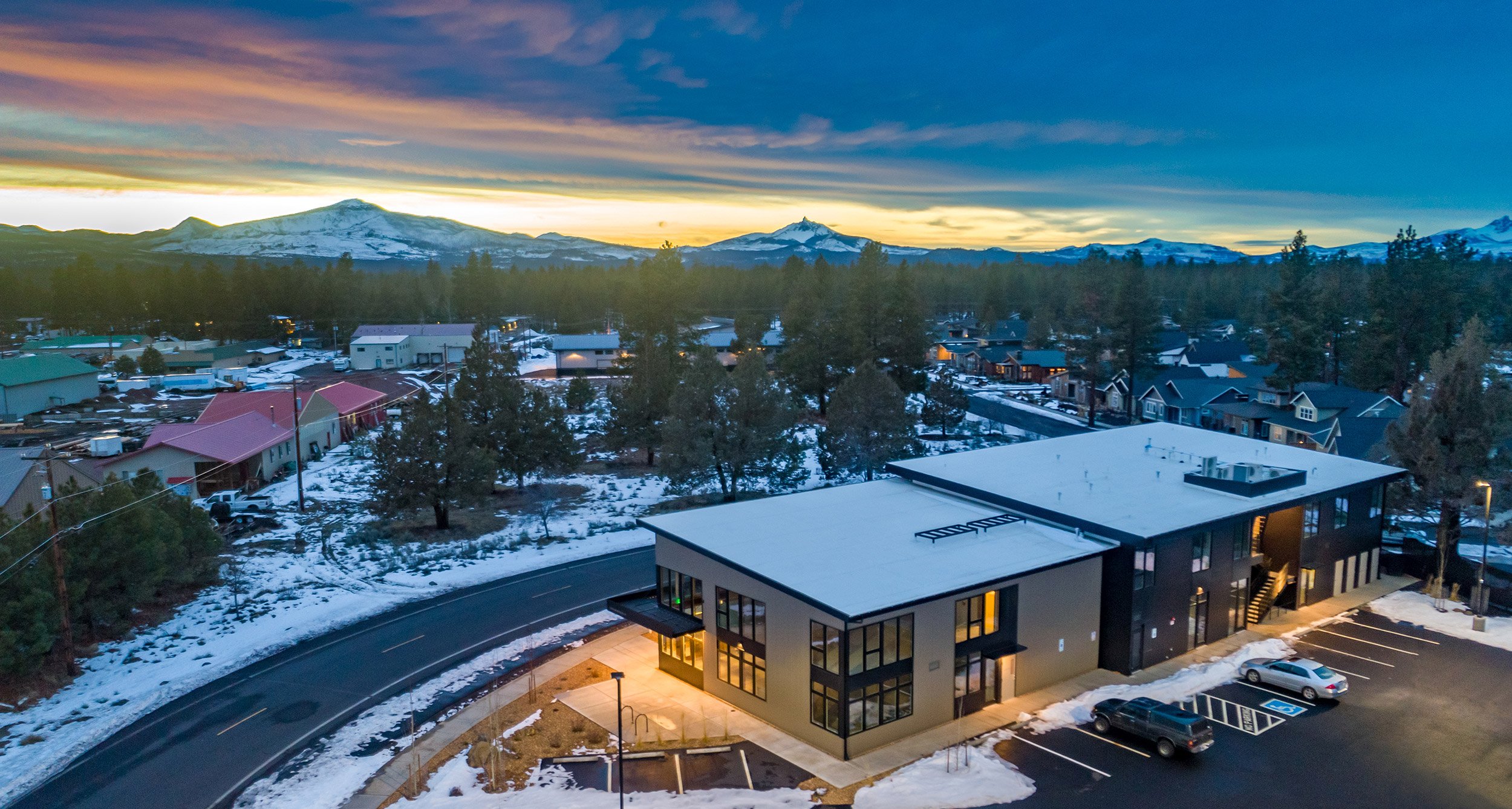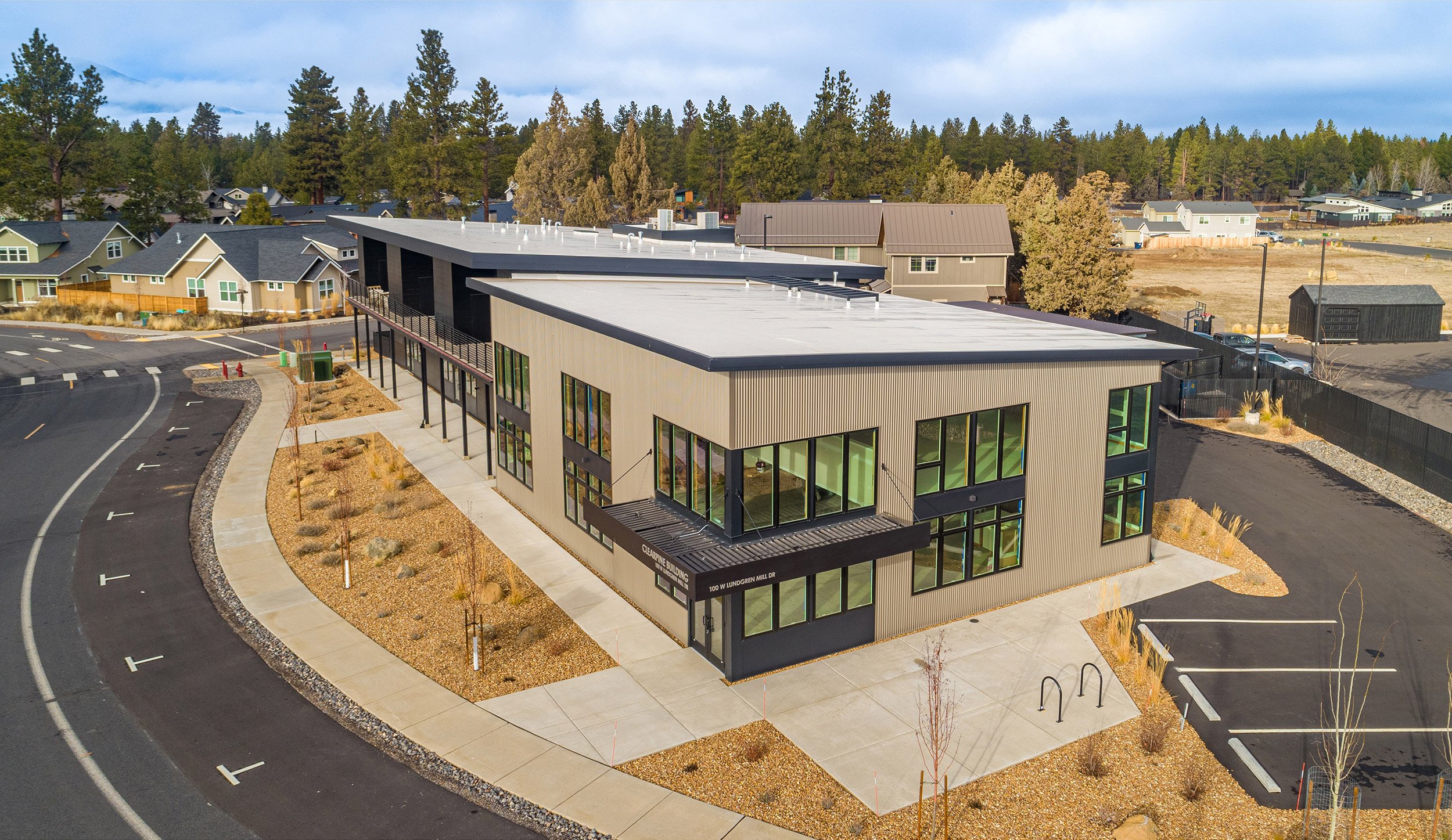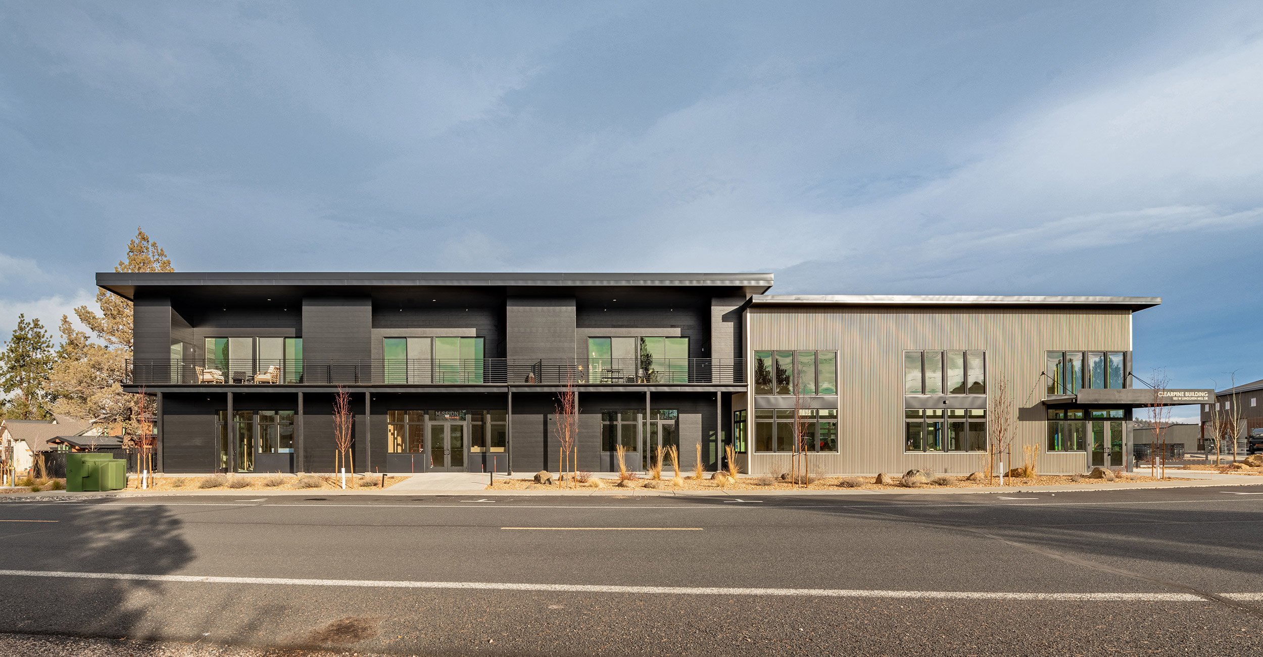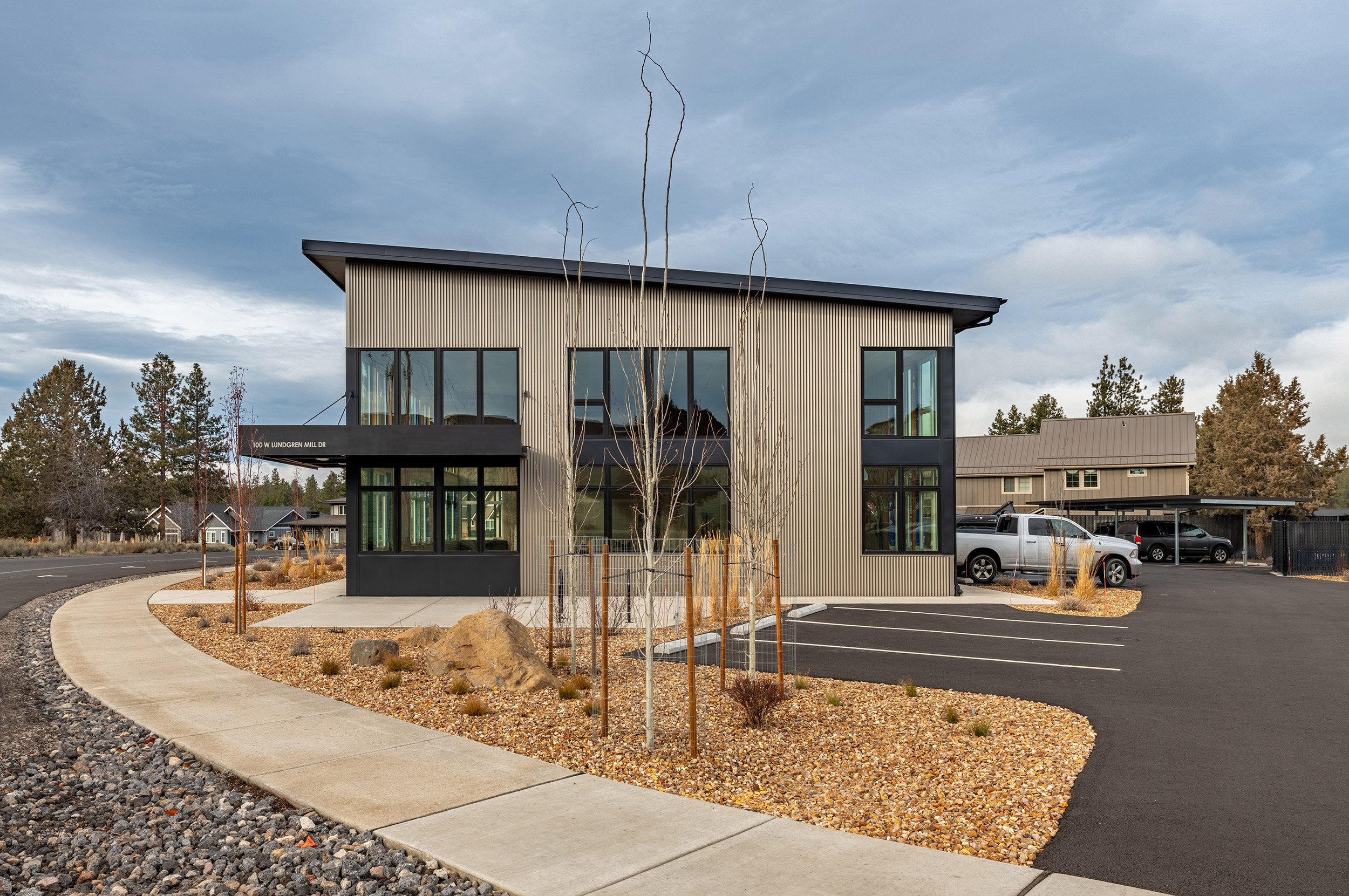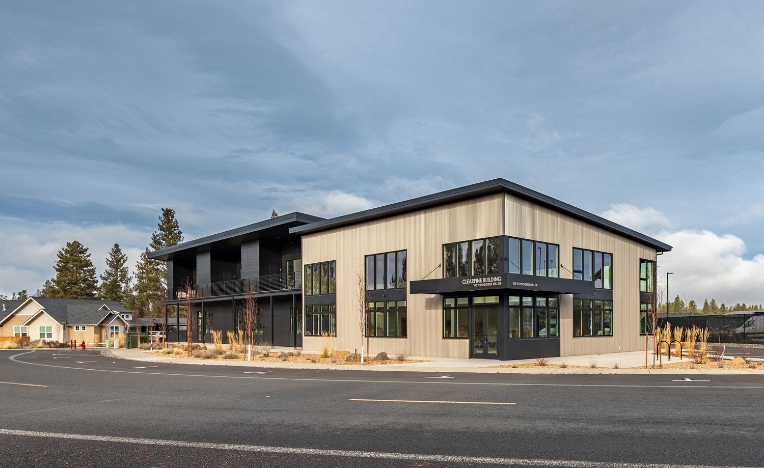 The Clearpine mixed-use building is located in the town of Sisters, Oregon, between a light-industrial zone and a residential neighborhood. This project establishes a link between these two contrasting neighborhoods, with ground-floor commercial space, a live-work townhouse, and three loft apartments. The new two-storey building is arranged on the site to provide views toward the nearby Three Sisters mountains. Completed in 2023.