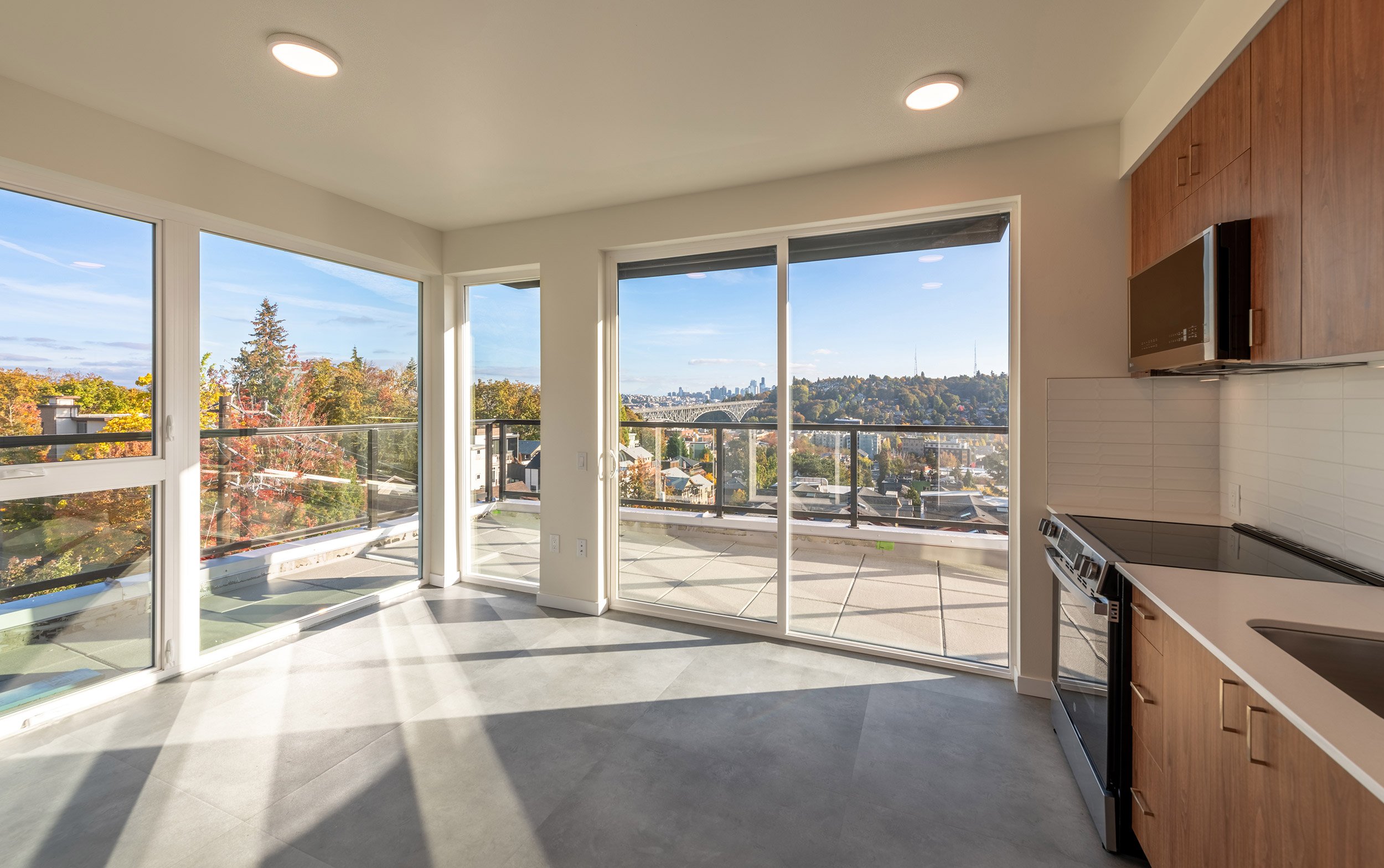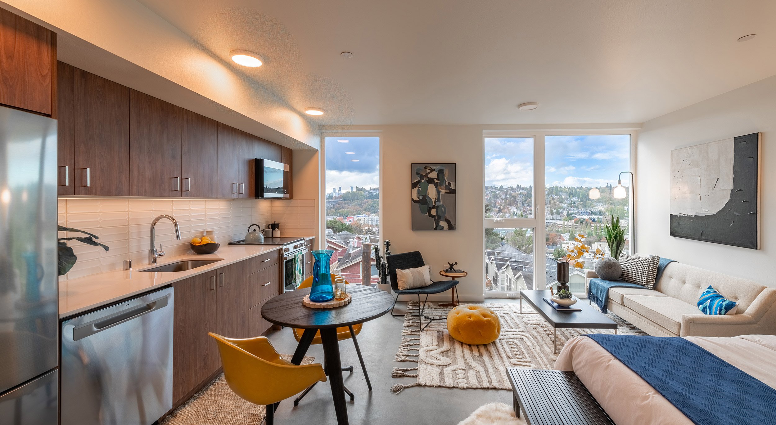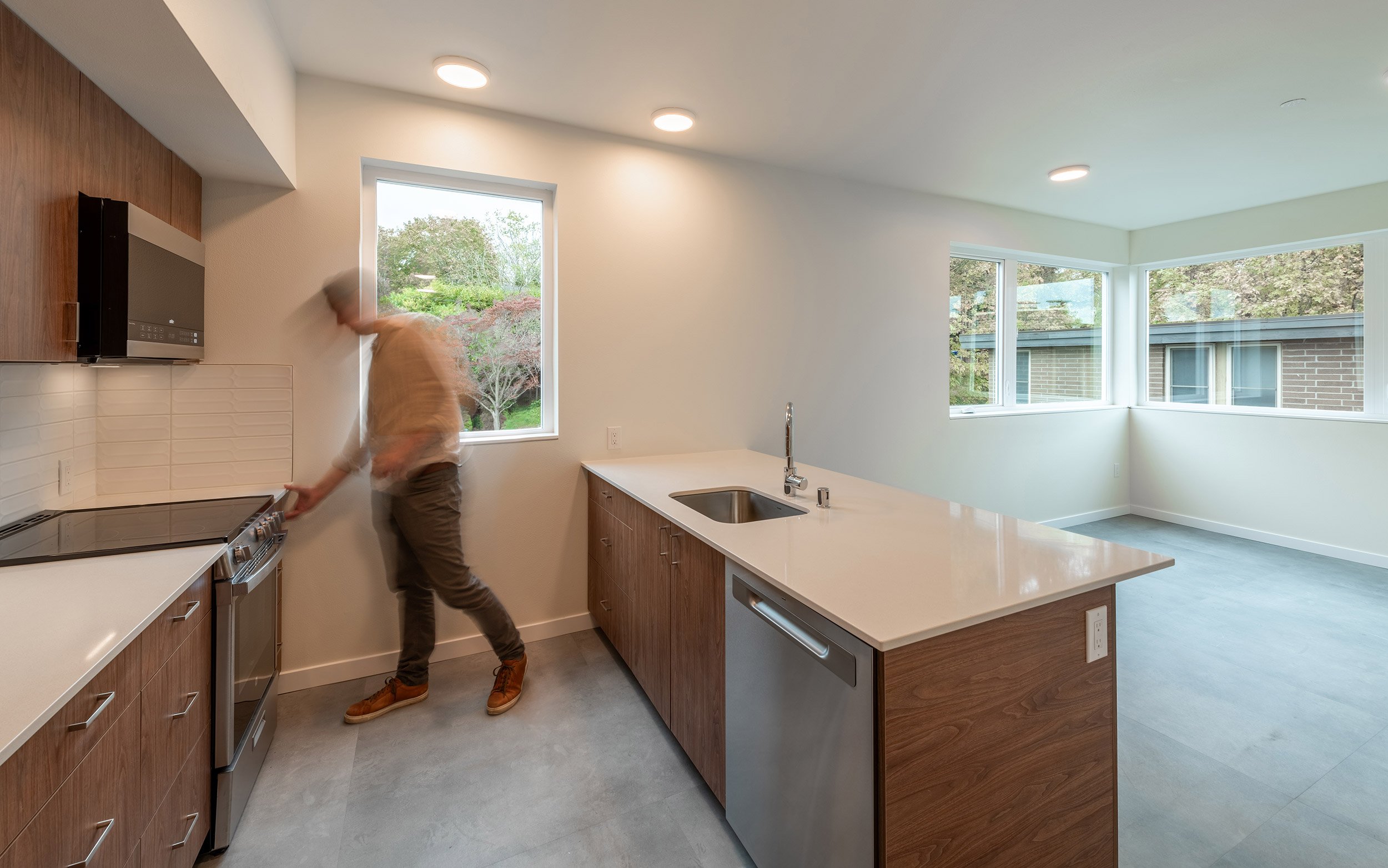Part of the Fremont View Campus in Seattle’s growing Fremont neighborhood, this project consists of a three unit addition and seismic upgrades to a mid-century apartment building, and a new eight-story building consisting of 29 apartment homes. Because the project site is on a significant slope that was created during the original Seattle street construction, we have employed a terraced design approach to take advantage of the unique terrain, and to integrate the two buildings. Extended information gathering and preliminary design phases allowed us to work through the unique utility and adjacent street complexities, building access, and impacts to adjacent neighbors. The project was completed in October of 2024