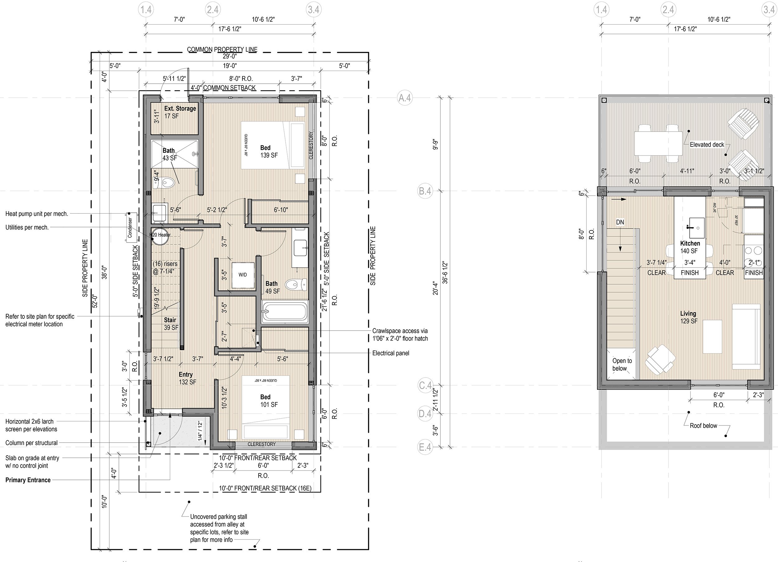 In BUILD’s ongoing collaboration with Sisters Habitat for Humanity, the team was tasked with expanding SHH’s mission and production capacity at Larch Commons, significantly increasing the number of homes available through SHH’s subsidized land lease program. Beyond architectural design and permitting, BUILD’s expanded project management role included land use approvals, compliance with firewise landscape design standards, infrastructure coordination and approval, new underground electrical service distribution across two city blocks, and construction administration for all vertical development.