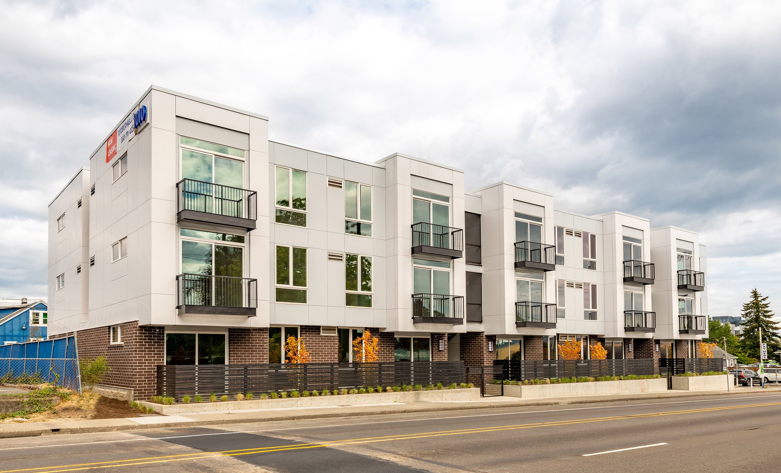 The Burwell Apartments are located in Bremerton, WA, a ferry ride from downtown Seattle on the Kitsap Peninsula. This new, 20,000-sf, 25-unit apartment building includes covered and open parking. The design follows a rigorous logic of varying unit types to offer flexibility and optimize the building footprint. The program incorporates accessible ground floor units that open to terraces, and upper level units that capture views of the harbor and Puget Sound. The massing emphasizes articulation of form and geometrical rhythm. The project was completed in the fall of 2022.