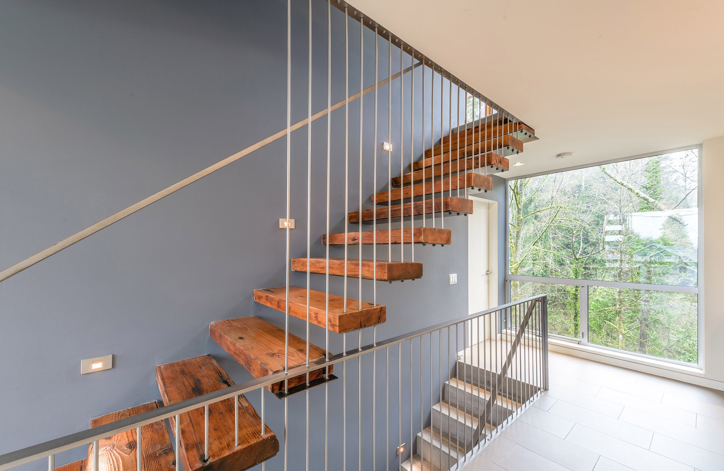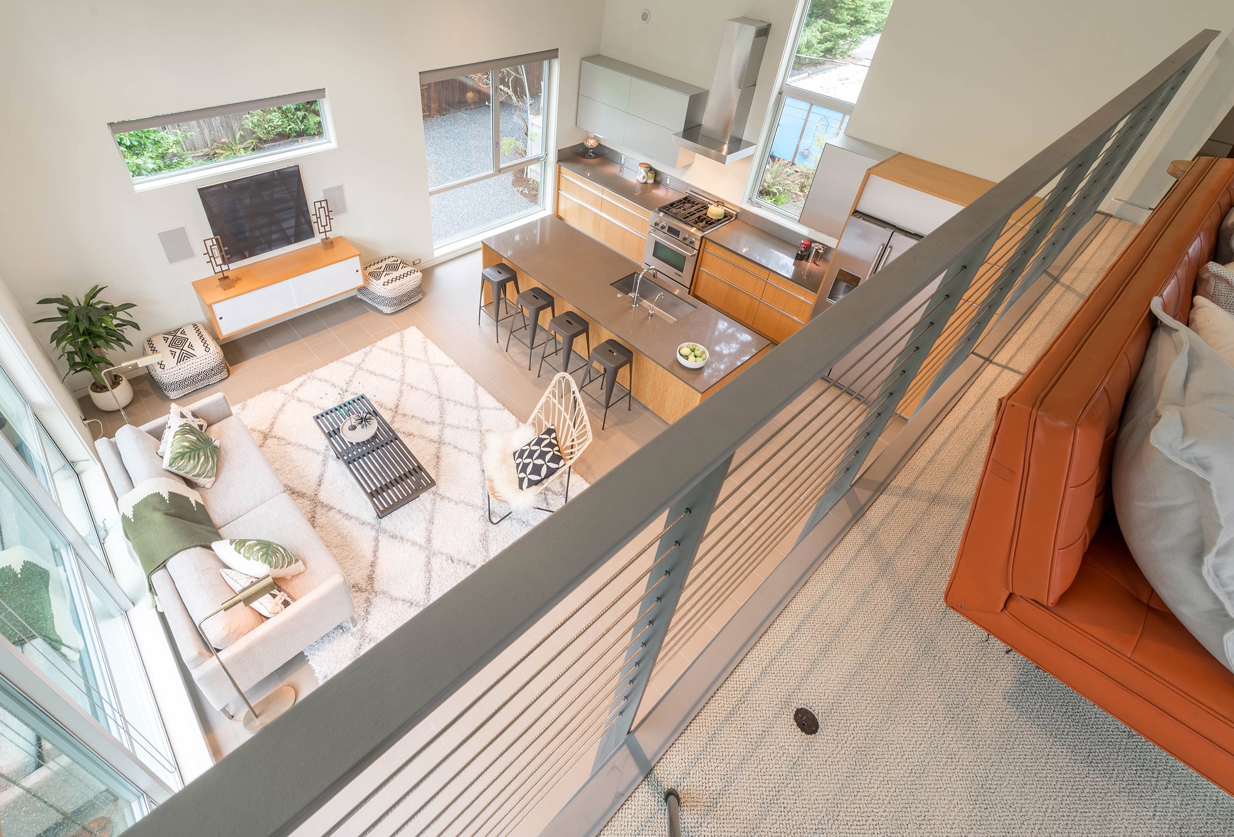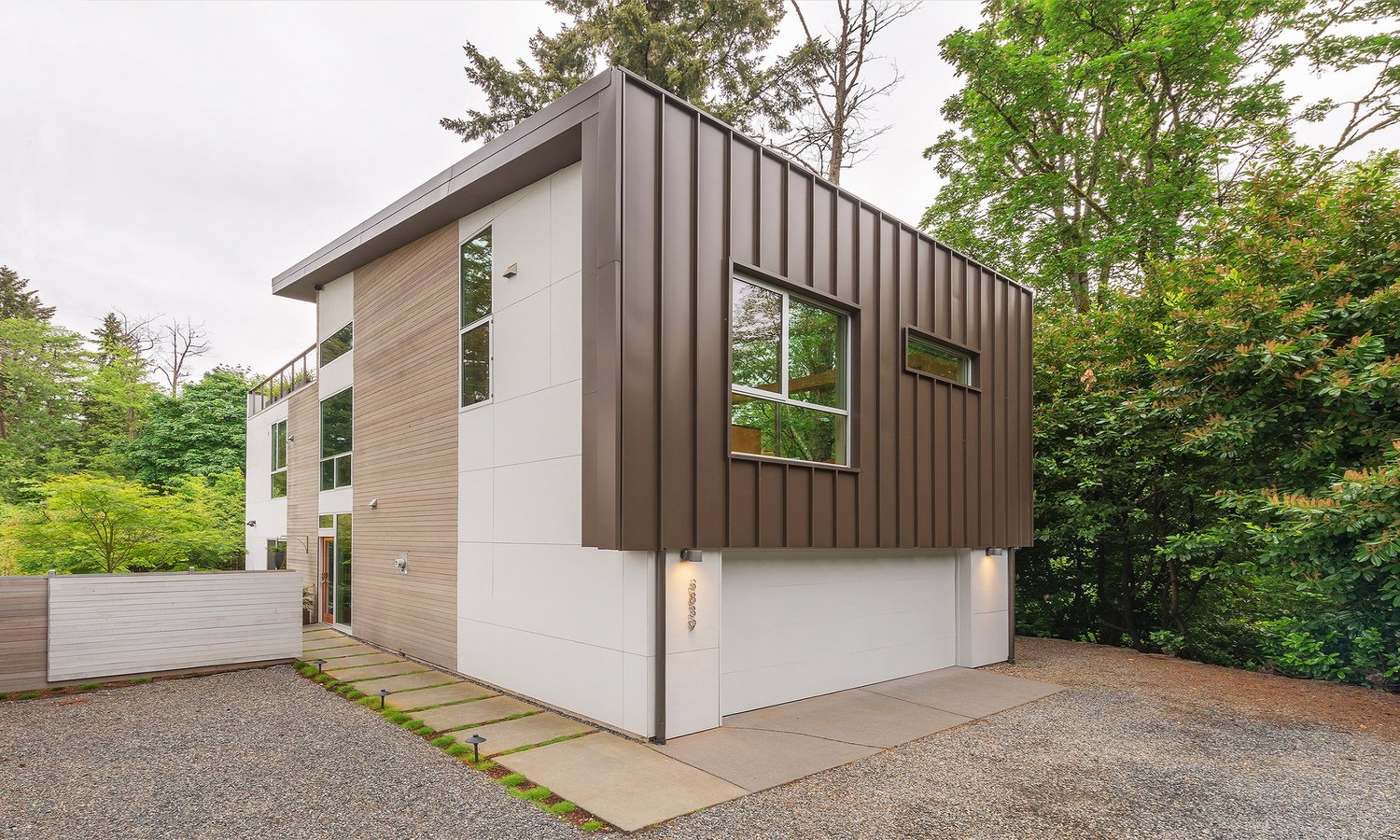 The 2,200-sf residence, with additional 700-sf flex space for shop and studio, is a design-build-development project, and the first realization of our Case Study House series. The project takes advantage of a rare, private, wooded site directly above the Thornton Creek watershed. The flexible program allows for urban family living, and a provision for a separate apartment at the ground level for an aging relative. The lofted living space provides an abundance of natural light, while providing framed views to the forest beyond. Exterior and interior finishes are carefully selected for durability, warmth, and timelessness: clean modernism that will last deep into the 21st century and beyond.