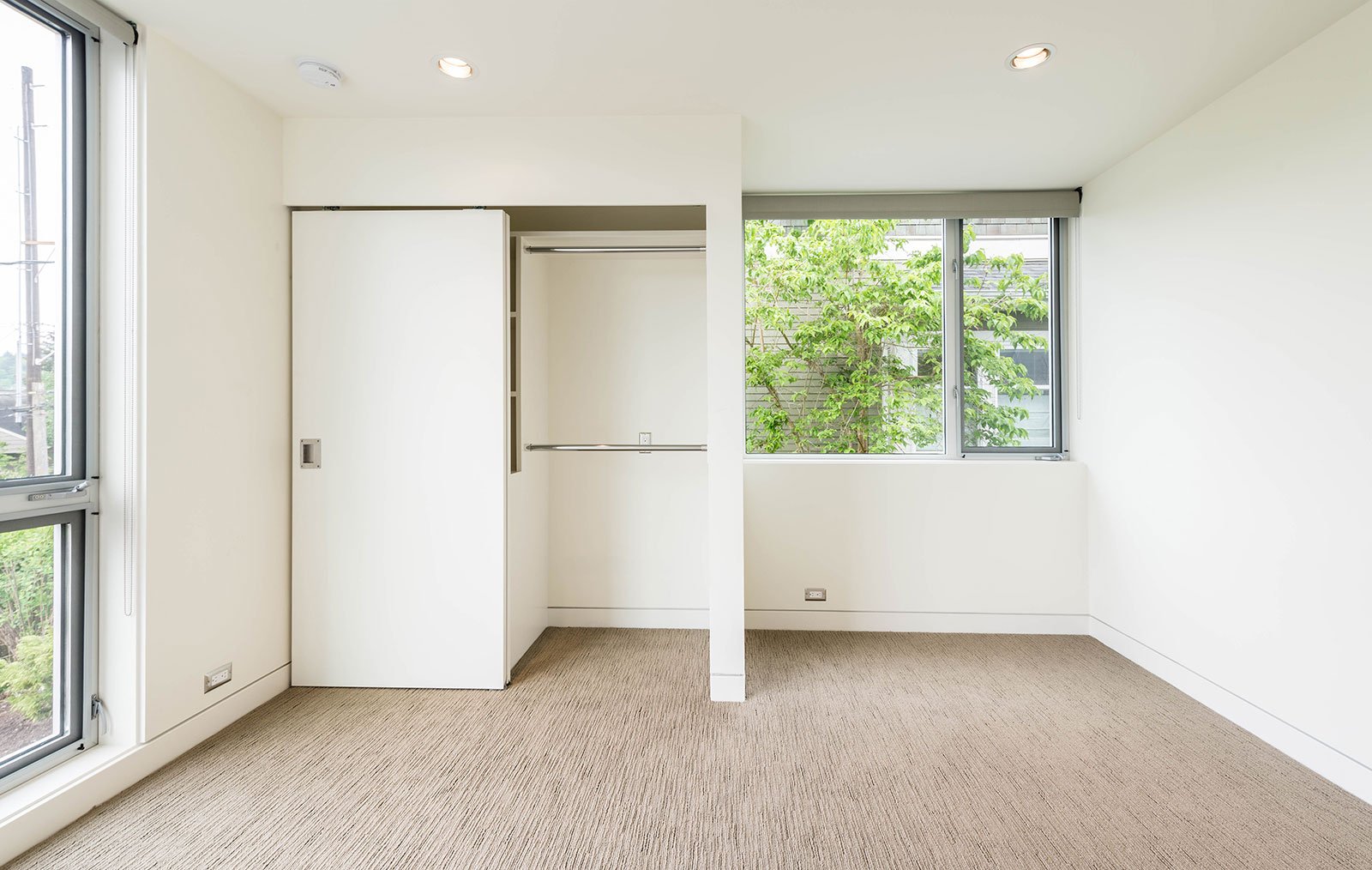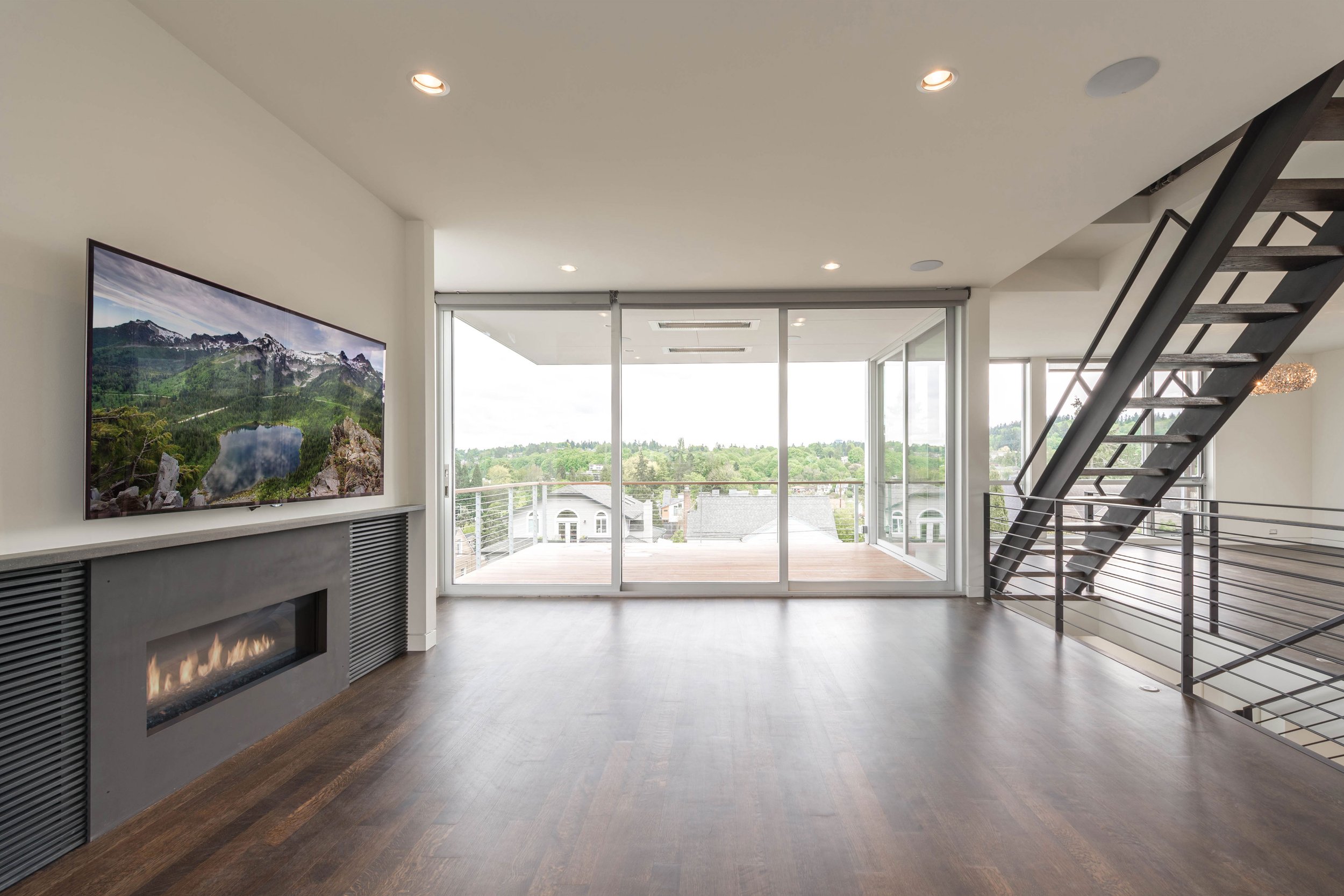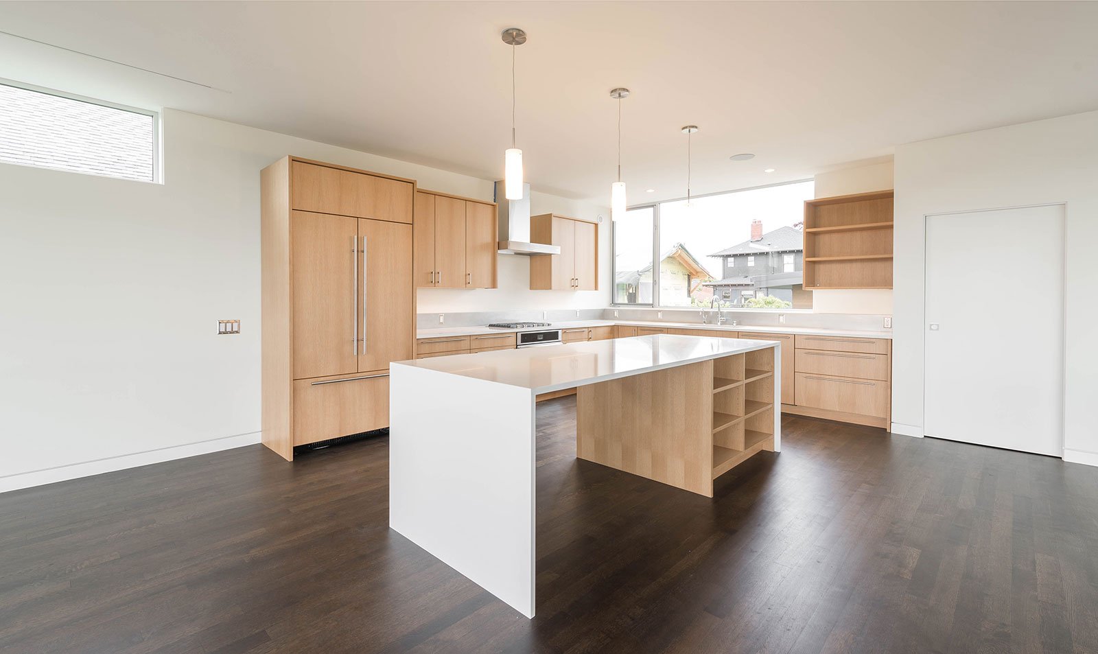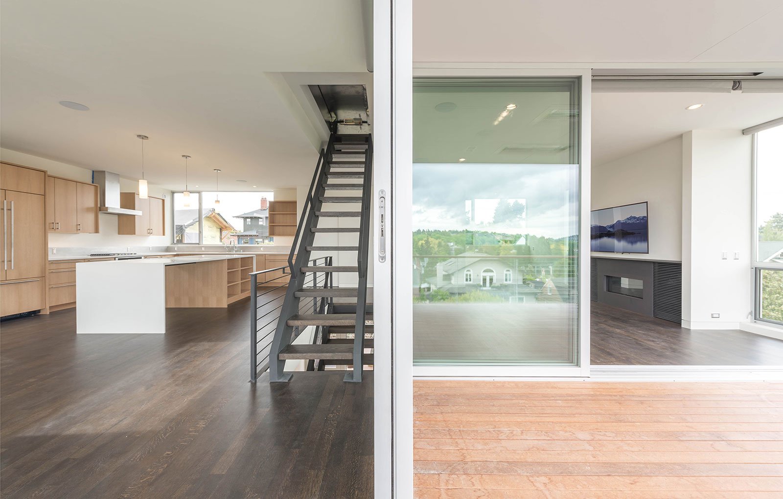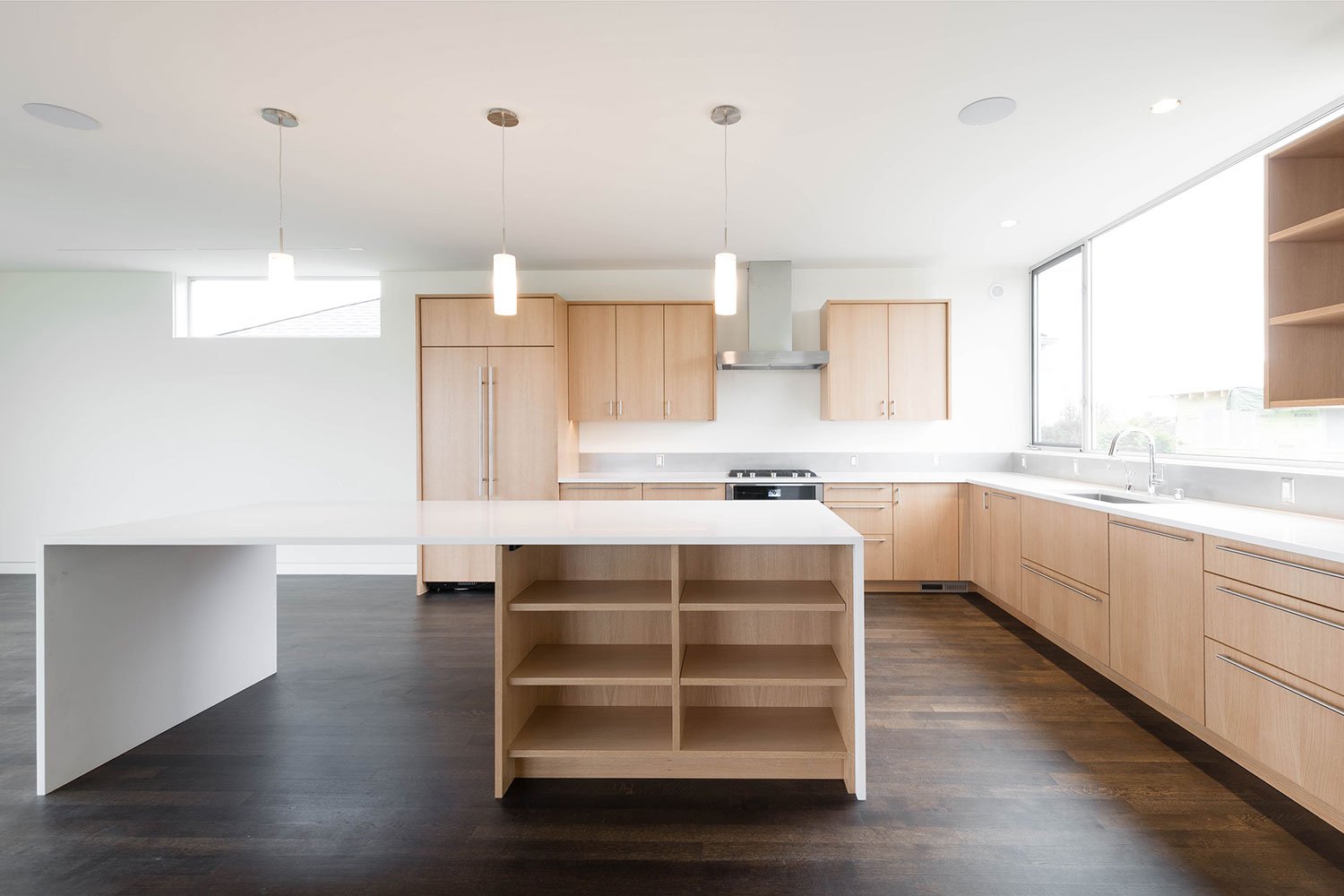 Continuing with our rich tradition of self-developing projects and experimenting with small, single-family lots with primary residences and accessory dwelling units, this three-storey residence for a small family employs a reverse floor plan where the common areas are located at the upper level to capture natural light and views of Ballard, the ship canal, and downtown Seattle. A steep slope condition, coupled with alley access, retains a tidy footprint while offering design opportunities for a day-lit basement and detached garage.