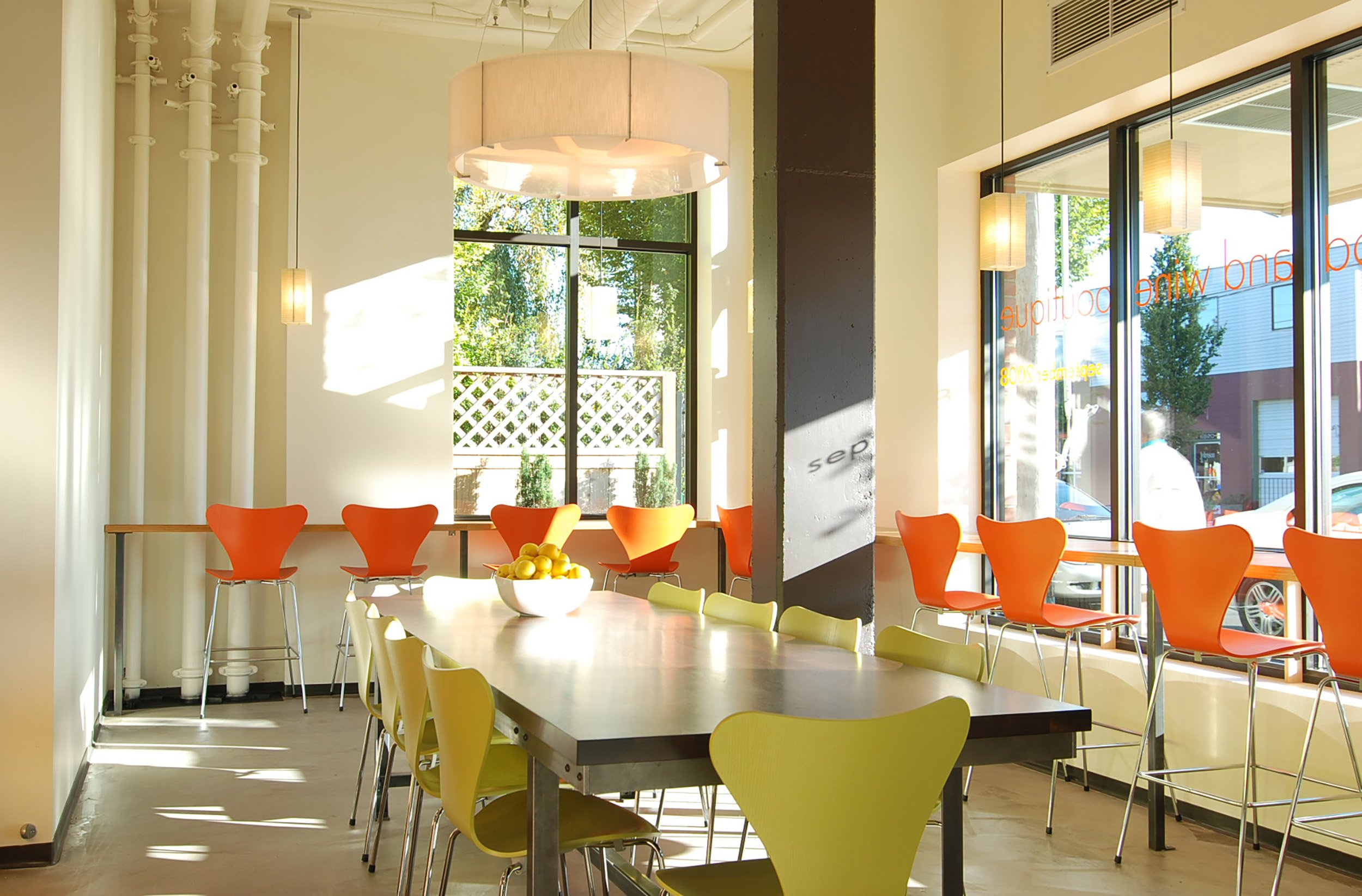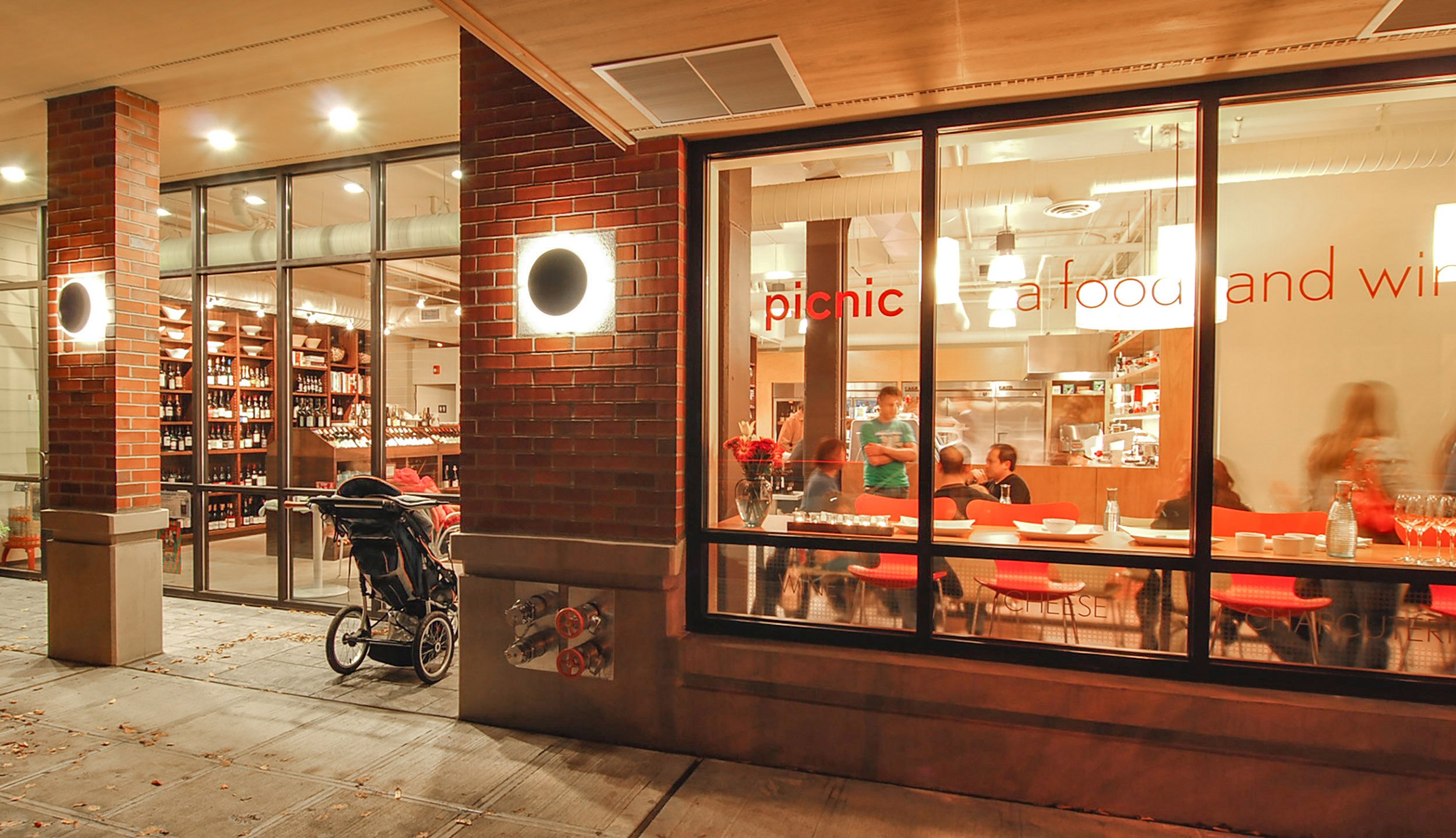 This project involved the design and construction of a new space for deli and retail use on the ground floor of a condominium building. Picnic’s program comprised shopping and casual dining. BUILD designed the surfaces to be durable, modern, and warm, and the existing shell and exposed building systems were left largely untreated, but refinished as texture. Display of products and foods became an important aesthetic factor on the interiors. Color and graphics complement the owners’ cooking and wine pairing skills.